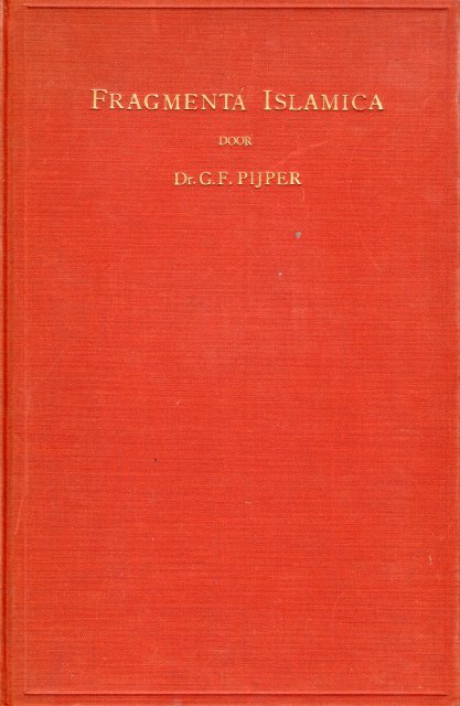 Pijper, G.F. - Fragmenta Islamica : studiën over het islamisme