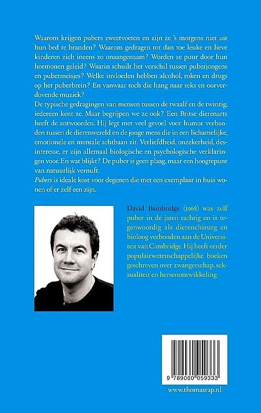 ![Bainbridge , David . [ isbn 9789060059333 ] 1617 - Pubers . ( Een bijzondere diersoort . ) Waarom krijgen pubers zweetvoeten en zijn ze 's morgens niet uit hun bed te branden? Waarom gedragen tot dan toe leuke en lieve kinderen zich ineens zo onaangenaam? Worden ze puur door hun hormonen geleid? - Bainbridge , David . [ isbn 9789060059333 ] 1617 - Pubers . ( Een bijzondere diersoort . ) Waarom krijgen pubers zweetvoeten en zijn ze 's morgens niet uit hun bed te branden? Waarom gedragen tot dan toe leuke en lieve kinderen zich ineens zo onaangenaam? Worden ze puur door hun hormonen geleid? -](https://images.boekwinkeltjes.nl/medium/NRQORBBLSXID1hvQGuHE.jpg)
