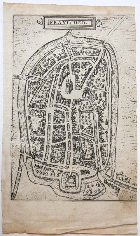 | Titel: | [Antique print, engraving] Franicher (Franeker), published ca. 1612-48. |