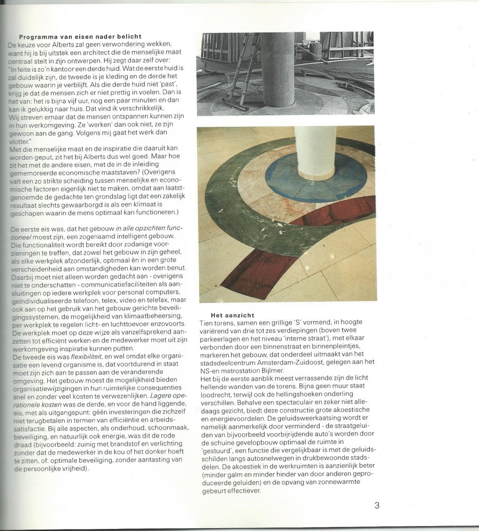 | Uitgever: | Brochure bij de oplevering van het NMB Hoofdkantoor in Amsterdam Zuid-Oost. [z.p.]: NMB-Bank, [1987]. Geen drukverm. Ills.; basiscijfers van de nieuwbouw door Architectenbureau A. Alberts B.V. [en van Huut] |