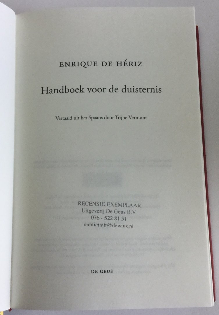 Hériz, Enrique de - Handboek voor de duisternis