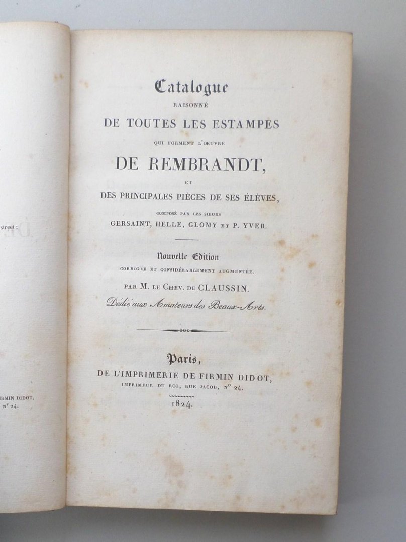 Gersaint, Helle, Glomy et P. Yver - Catalogue raisonné de toutes les estampes qui forment l'oeuvre de Rembrandt, et Des principales ppieces de ses éleves (2 vols in 1 bind)