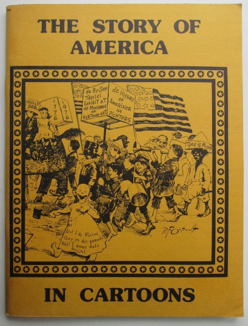 Catalogus t.g.v. een Bicentennial exhibit in het kersverse Museum. De geschiedenis en cultuur van de USA (vanaf de eerste kolonisten in Jamestown, de Revolution, de Civil War, de Eerste en Tweede Wereldoorlog) weergegeven in karikaturale tekeningen en strips van o.a. Dik Browne (Hagar), Ron Cobb, Thomas Nast, Charles Schulz (Peanuts), Bill Sanders, Pat Oliphant, etc.