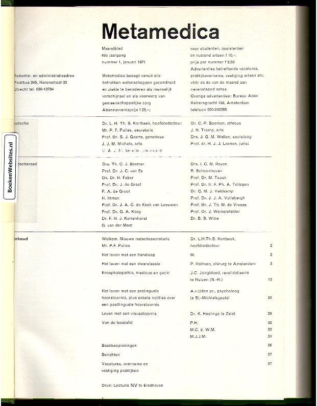 Kortbeek, L.H.Th.S. ea. - Metamedica 1971