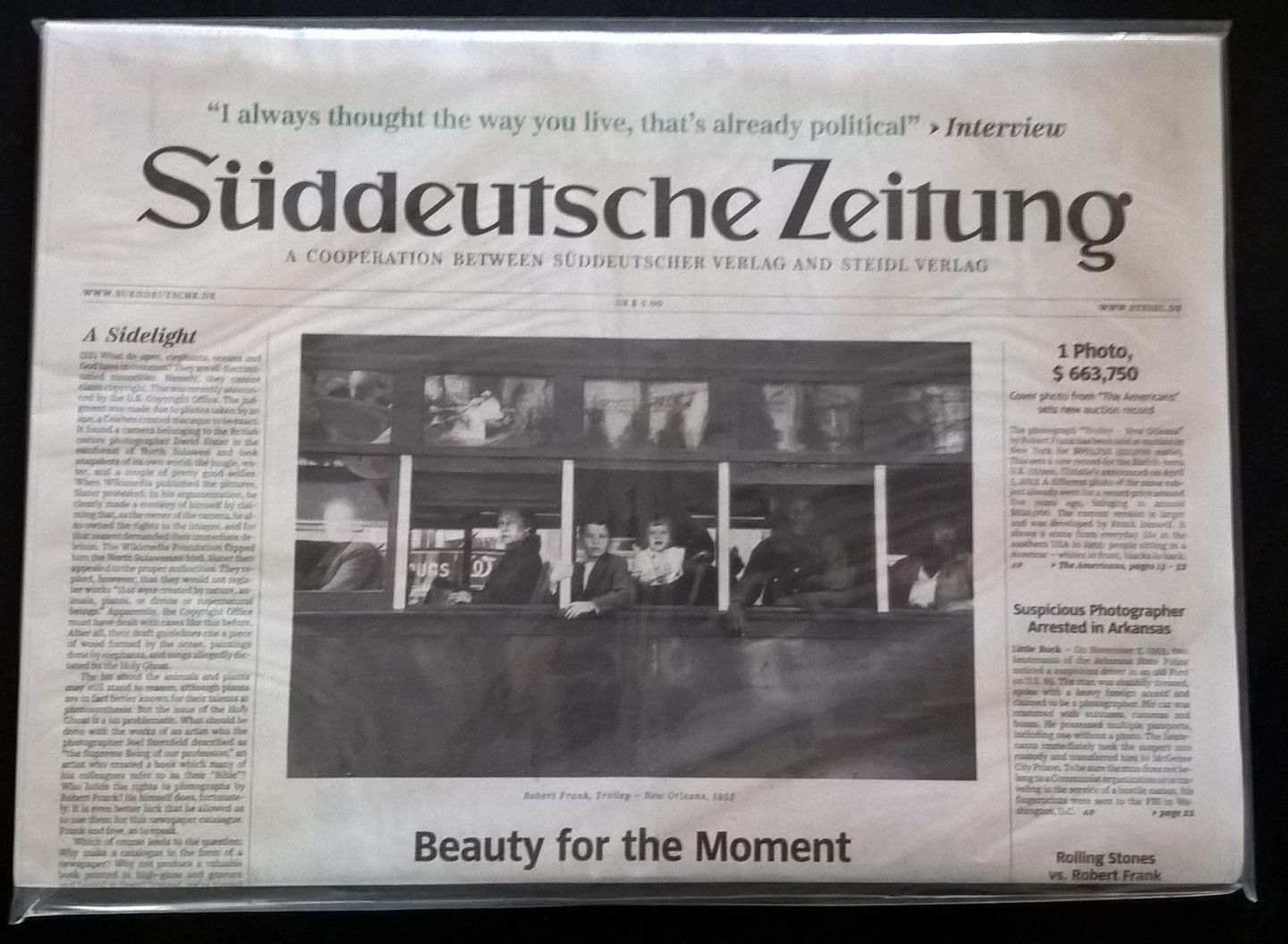 This is the unconventional catalogue of the exhibition “Robert Frank, Books and Films, 1947–2016,” a special edition of the German newspaper the Süddeutsche Zeitung—following its original design and format, and printed on newsprint.