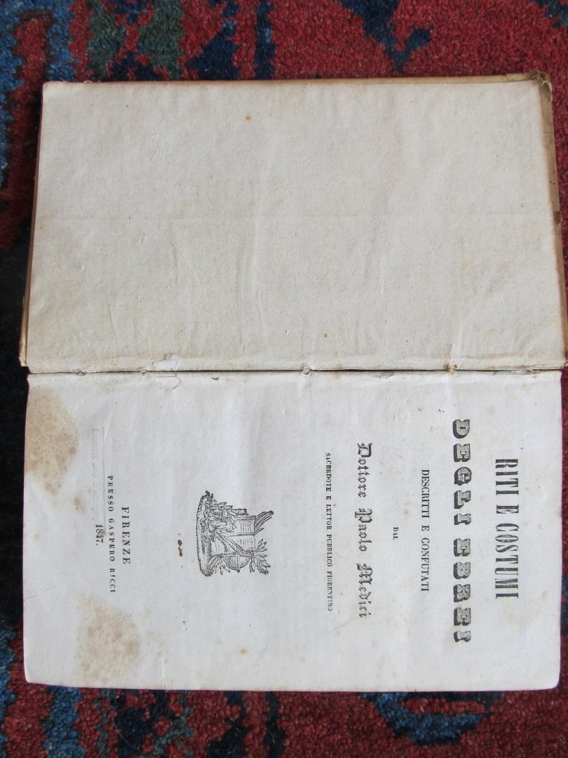 | Titel: | RITI E COSTUMI DEGLI EBREI descritti e confutati |