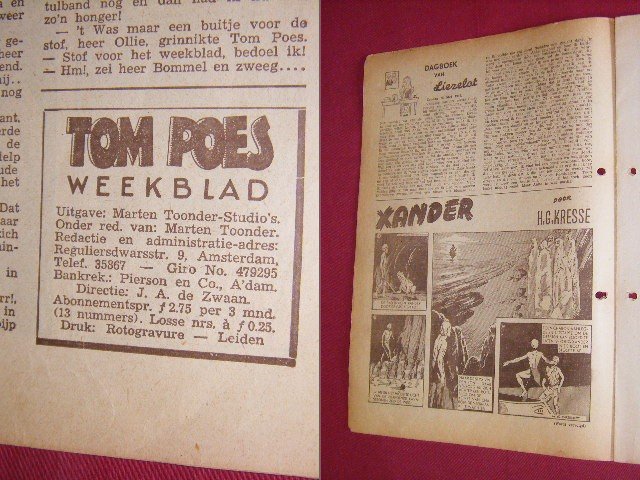 | Bijzonderheden: | Brochure in goede staat. 2 perforatiegaten. Losbladig. Bijdragen van o.a. Marten Toonder, H.G. Kresse, Harold R. Foster (Prins Valiant) en Wim Lensen. |