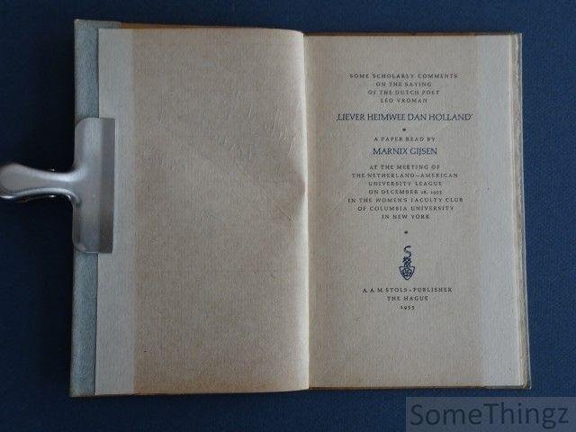 Gijsen, Marnix. - Liever heimwee dan Holland. Some scholarly co