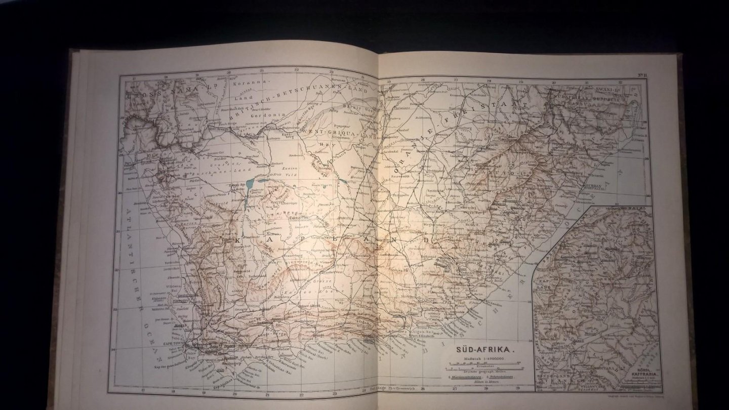 | Bijzonderheden: | Linn. gepreegde band, genaaid, 11p.+ 16 gelithografeerde kaarten Wagner & Debes, Leipzig. De band heeft aan de bovenkant flinke verkleuride vlekken en is aan de uiteinden wat gesleten; het binnenwerk is in goede staat. Zeldzaam. 380gr. |