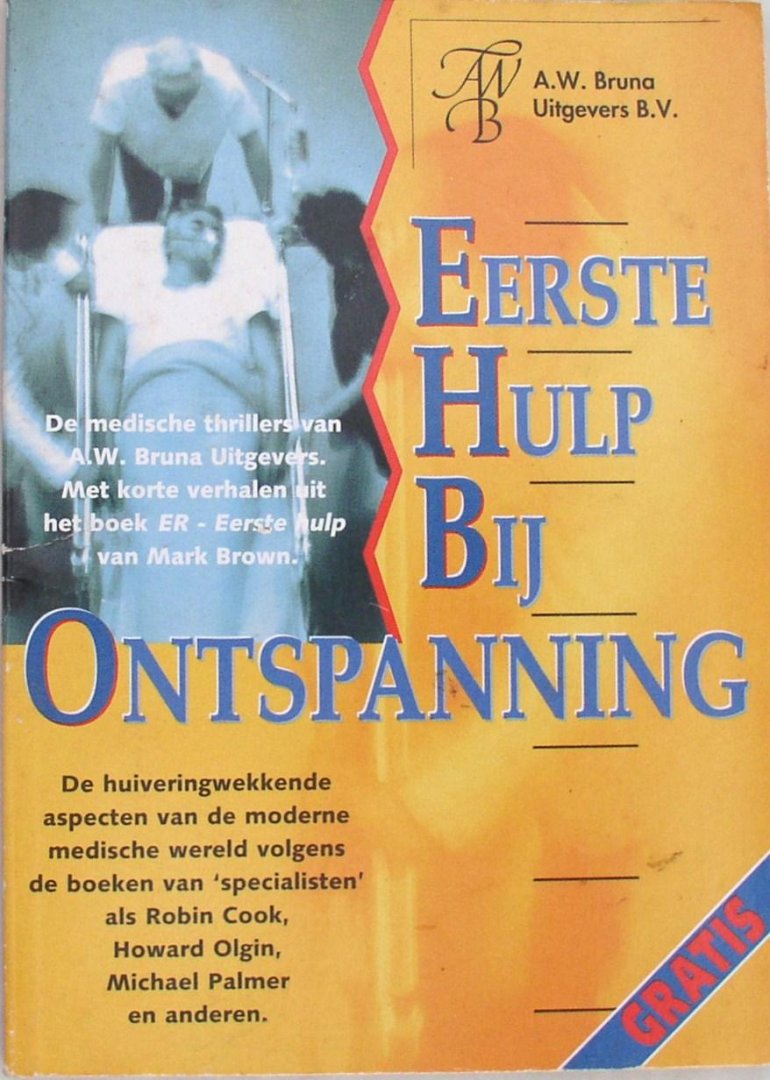 | Titel: | Eerste Hulp Bij Ontspanning / De medische thrillers van A.W. Bruna Uitgevers. Met korte verhalen uit het boek ER- eerste hulp van Mark Brown. |