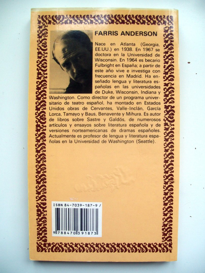 (Edición de Farris Anderson) ISBN 8470391879 6e druk 1988 192 pocket (in goede staat!, korte handgeschreven tekst op achterzijde voorkaft) Staat van het boek: 8.0 Sastre es autor de veintidós obras de teatro. El suyo es un teatro de investigación y revelación y nunca de propaganda. Es un teatro rico en experiencias humanas y en sutileza poética. Sastre ha comprendido siempre que la fuerza dramática no se consigue dando soluciones panfletarias a problemas complejos, sino haciendo preguntas acerca de esos problemas. No se logra por medio del dogma, sino por la revelación social y existencial. El sentido del trabajo intelectual y artístico está en aclarar el mundo dice Sastre, y su producción dramática es testimonio a esta misión inquietante y reveladora que Sastre se ha planteado. Prijs €5,- |