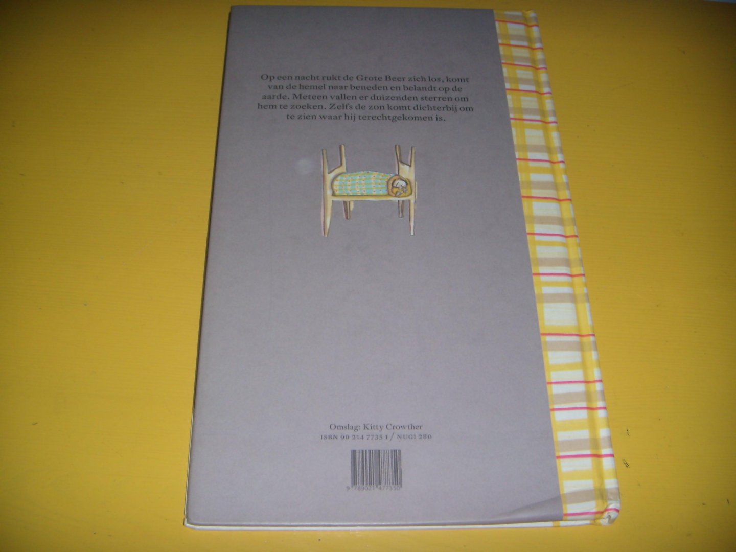 Boek is cadeau-waardig. Op een nacht rukt de Grote Beer zich los, komt van de hemel naar beneden en belandt op de aarde. Meteen vallen er duizenden sterren om hem te zoeken. Zelfs de zon komt dichterbij om te zien waar hij terechtgekomen is. Het boek had een ondertitel kunnen hebben als: 'Hoe komt het dat kinderen 's avonds slaap krijgen'. Op een nacht is de Grote Beer, het sterrenbeeld, losgekomen van de hemel en op aarde beland. Daarmee begint de ellende. Andere hemellichamen verlaten hun vaste baan om hem te zoeken, de natuur raakt ontredderd. De mensen bedenken hoe ze Grote Beer terug naar de hemel krijgen, zetten ten einde raad het leger in. Niets helpt, tot een woestijnreiziger hem aanspreekt op zijn taak als gids aan het firmament. In een zandstorm keert Grote Beer terug. Alles is weer zoals het was. Elke avond dwarrelt er nog wat zand uit zijn vacht naar beneden en daar krijgen de kinderen slaap van. Een wijs en warm verhaal, niet alleen omdat het de herkomst van de slaap zo mooi verklaart, maar ook omdat het overbrengt dat de samenhang in de natuur niet ongestraft verbroken kan worden. Heldere, open, naïeve illustraties in kleurpotlood en verf laten de ontreddering op aarde zien en gaan in hun kleuren mee met de stemmingen van het verhaal. De tekst staat in een meestal omlijnde balk onder aan de pagina met soms nog een kleine getekende verwijzing naar de gebeurtenissen. |
