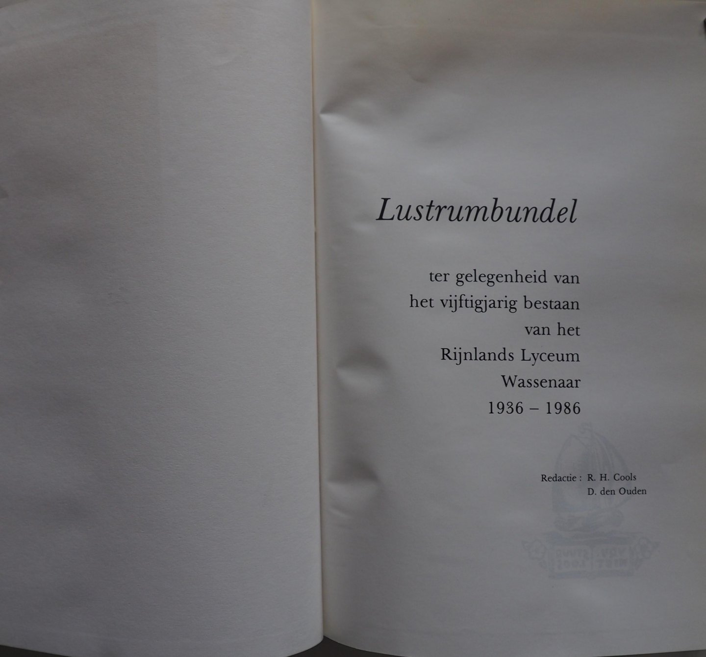 | Titel: | 50 RLW Lustrumbundel ter gelegenheid van vijftigjarig bestaan van het Rijnlands Lyceum Wassenaar 1936-1986 Met toegangsbewijs, programma en lesrooster enz |