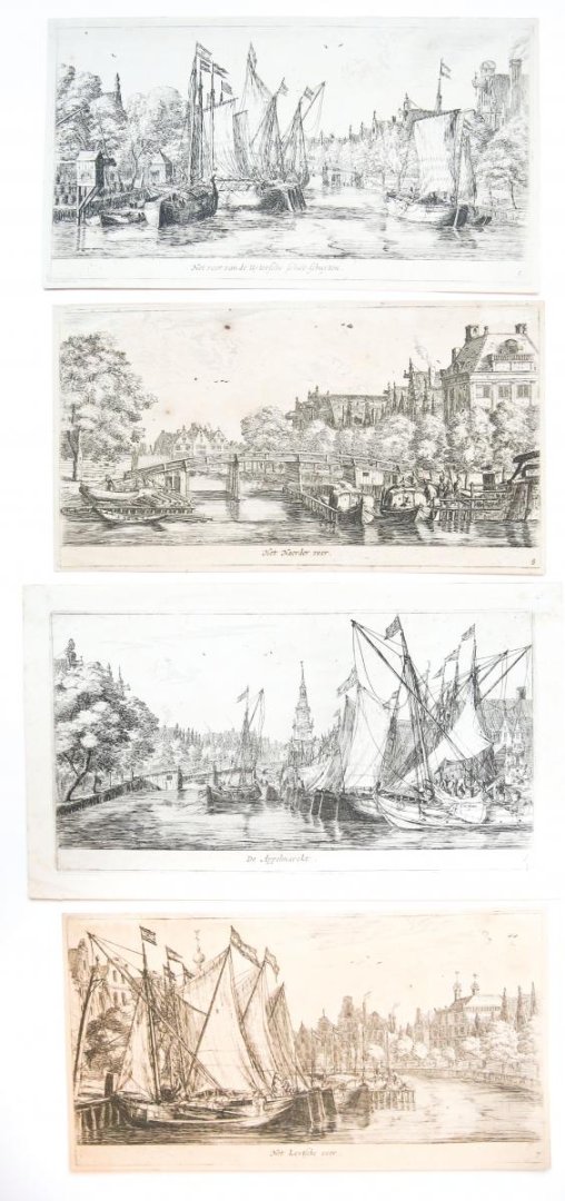 | Bijzonderheden: | Complete series of eight plates with views of Amsterdam, all in later states (see conditions report), with titles, numbers and signatures by the artist. On verso all the plates bear collector's mark: Jacobus van Eck (L.800a);<ol> <li>S. Anthonis ... |