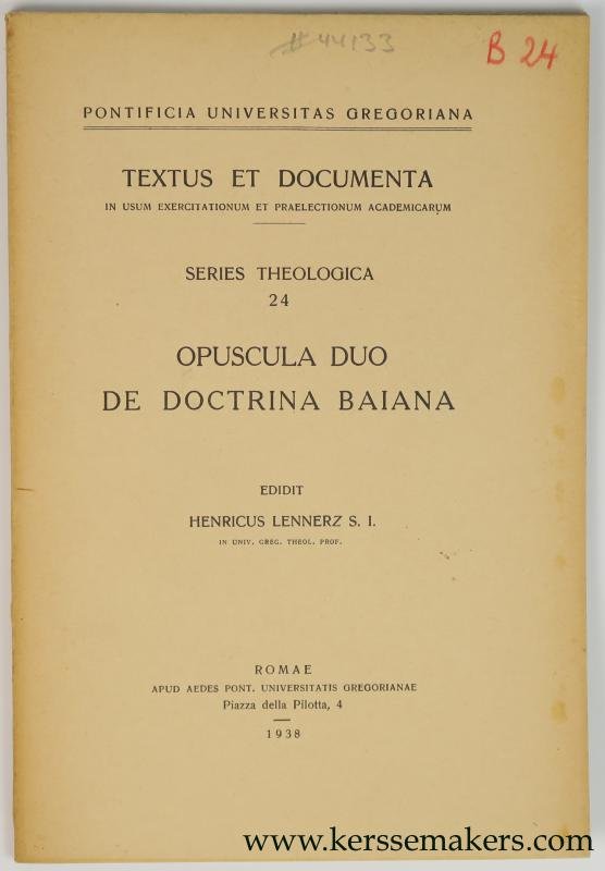 Lennerz, Henricus. - Opuscula Duo de Doctrina Baiana.