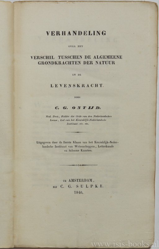 | Titel: | Verhandeling over het verschil tusschen de algemeene grondkrachten der natuur en de levenskracht. |