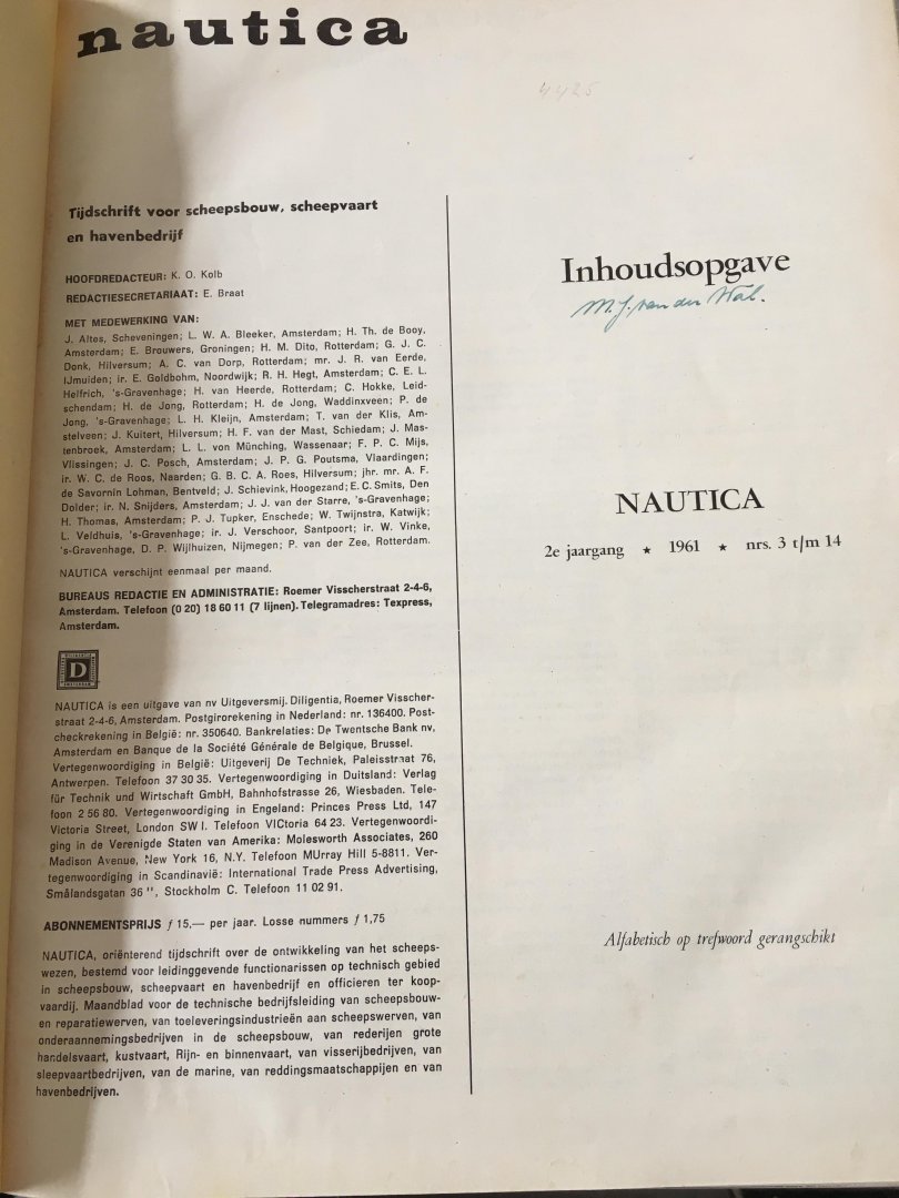 Hoofdredacteur; K. O. Kolb - Nautica, 2e jaargang, 1961, nrs. 3