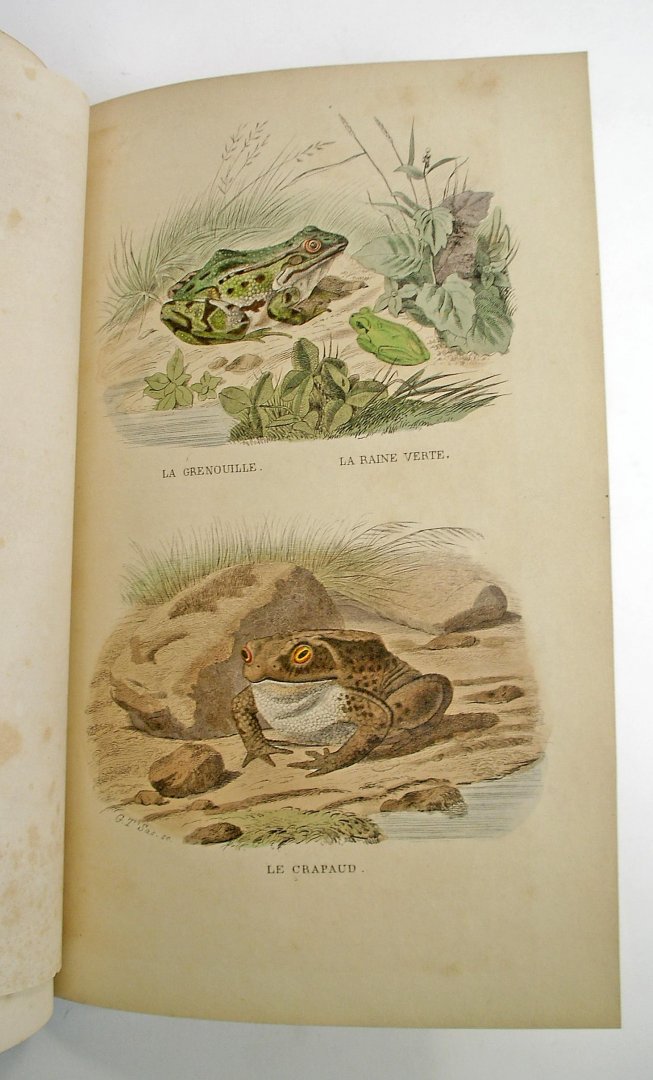 | Bijzonderheden: | Twee delen in octavo (27 x 19 cm), gebonden in rood linnen band met dito marokijn rug met goudopdruk. 654 + 574 pagina's met 29 handgekleurde afbeeldingen van vissen en reptielen. |