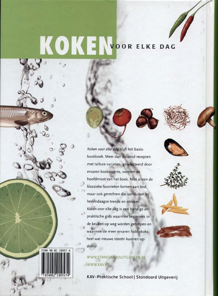 Koken voor elke dag is een uitgekiend basiskookboek met bijna tweeduizend recepten en talloze variaties, geselecteerd door ervaren kookexperts, vormen de hoofdmoot van het boek. Niet alleen de klassieke favorieten komen aan bod, maar ook gerechten die aansluiten bij hedendaagse trends en smaken. Het is een handige en practische gids die beginners in de keuken op weg helpt en waarmee de ervaren hobbykoks nieuwe ideeën opdoen. Dit waardevolle kookboek is een AANRADER voor beginners en gevorderde kookliefhebbers.