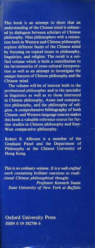 In this volume leading authorities in Western and Chinese philosophy explore different aspects of the Chinese mind by focusing on topical issues in philosophy, linguistics, and religion. The result is a unified volume which makes an invaluable contribution to the hermeneutics of cross-cultural interpretation as well to the investigation of the unique features of both Chinese philosophy and the Chinese mind. The distinguished contributors include John E. Smith, Robert C. Neville, Chad Hansen, Christoph Harbsmeier, Chung-ying Chen, Antonio S. Cua, Kuang-Ming Wu, and Lao Sze-kwang (Lao Yung-wei). A comprehensive bibliography of both Chinese and Western language sources is included, making this an essential reference for students and scholars of Chinese philosophy and East-West comparative philosophy.