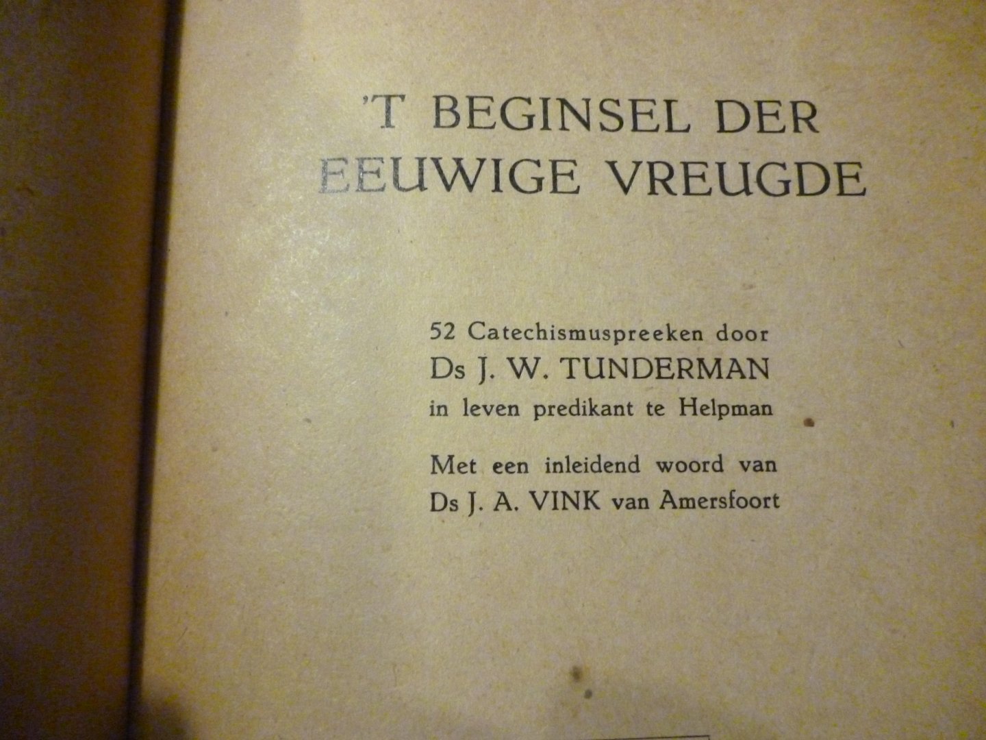 Tunderman J.W. - 't beginsel der eeuwige vreugde