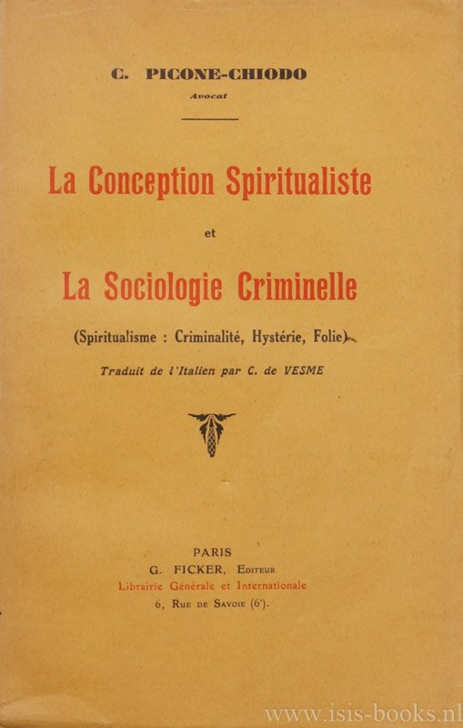 | Titel: | La conception spiritualiste et la sociologie criminelle (spiritualisme: criminalité, hystérie, folie). Trad. de l'Italien par C. Vesme. |