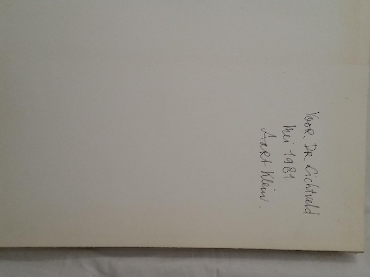 | Bijzonderheden: | Hard cover met stofomslag, 184 pp Gesigneerd door Arrt Klein |