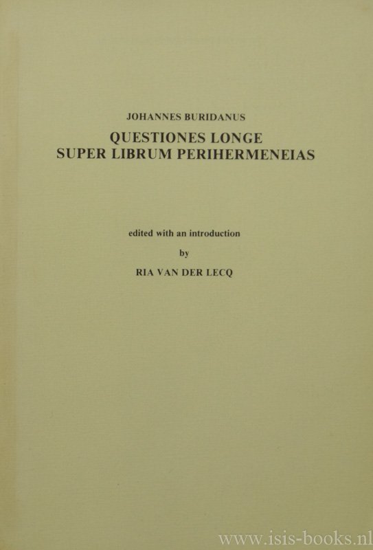 BURIDANUS, JOHANNES, JEAN BURIDAN - Questiones longe super librum perihermeneias. Edited with an introduction by R. van der Lecq.