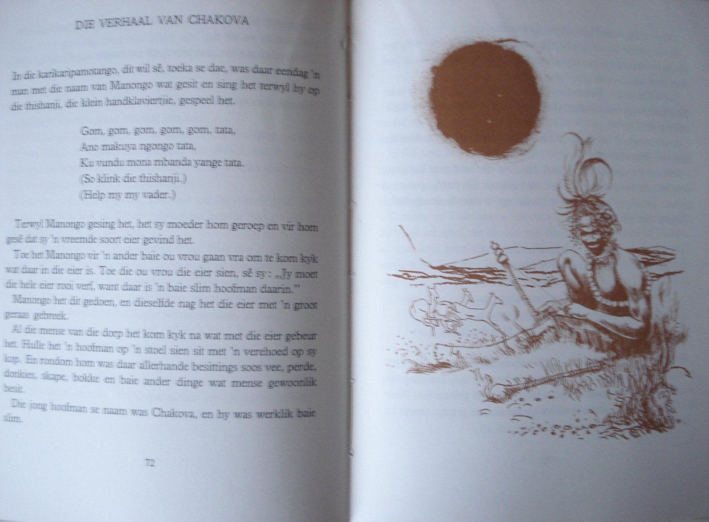 Stofomslag heeft gebruikssporen en slijtage. Boek zelf is in prima staat. Afrikaans ! Tekeninge deur Rufus Papenfus. Stckertje boekwinkel binnenzijde kaft. Op schutblad grote sticker : Prize for outstanding work Afrikaans ( Rondebosch School ). Oorspronkelijke titel Tales from the Okavango. Vertaald uit het Engels.