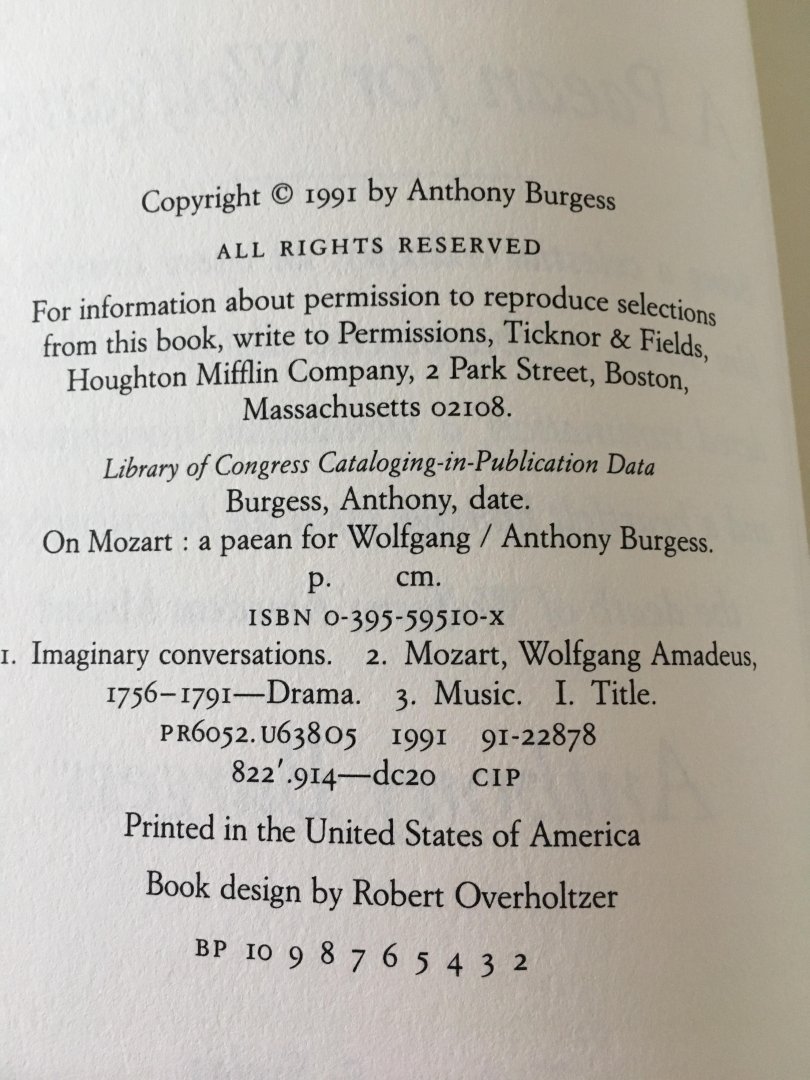 Anthony Burgess - On Mozart, A paean for Wolfgang
