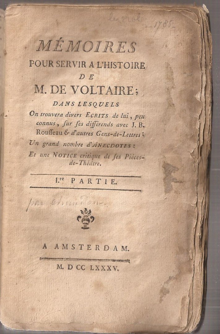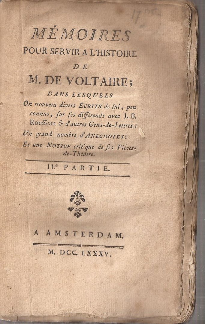 ![[SERVIÈRES (Baron de)] (VOLTAIRE) - Mémoires pour servir à l'histoire de M. de Voltaire, dans lesquels on trouvera divers écrits de lui, peu connus, sur ses différends avec J. B. Rousseau & d'autres gens-de-lettres; un grand nombre d'anecdotes; et une notice critique de ses pièces de t [SERVIÈRES (Baron de)] (VOLTAIRE) - Mémoires pour servir à l'histoire de M. de Voltaire, dans lesquels on trouvera divers écrits de lui, peu connus, sur ses différends avec J. B. Rousseau & d'autres gens-de-lettres; un grand nombre d'anecdotes; et une notice critique de ses pièces de t](https://images.boekwinkeltjes.nl/medium/ofPRSPgO1gcMxWWPxXxa.jpg)