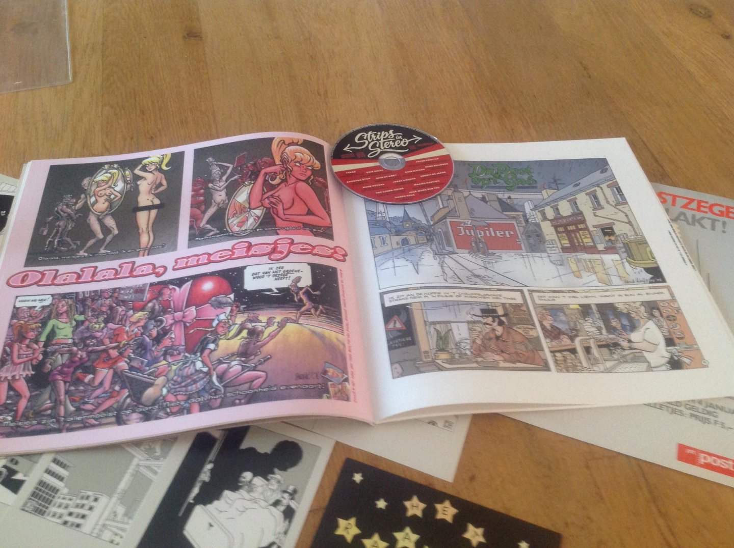 14 verstripte liedjes met de muziek ingesloten van Nederlandstalige komaf door bekende striptekenaars verbeeld. De extra's zijn de Tien Angsten kaarten van Joost Swarte met envelop en een curiosum kaart van tien jaar Het Raadsel uitgeverij en de Kinderpostzegel reclame poster van 1984/1985 eveneens van Joost Swarte. Alle items in mooie staat.