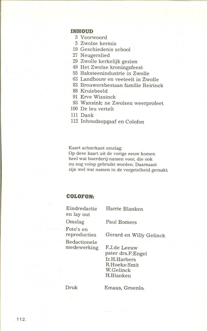 Reproducties en Foto's Gerard en Willy Gelinck Redactionele medewerking F.J. de Leeuw Pater Drs P. Engel Ir H. Harbers R. Hoeks - Smit W. Gelinck H. Blanken |