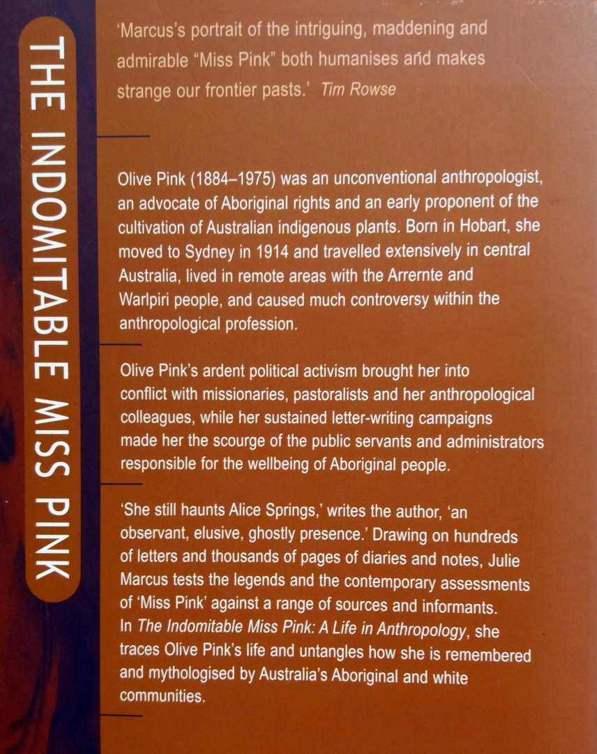 (A Life in Anthropology) (UNSW Press / Paul Fitzsimons) ISBN 0958176027 uitgave uit 2005 340 pp paperback grootformaat (zo goed als nieuw!, naam voorin) Staat van het boek: 9.0 Olive Pink (1884-1975) was an unconventional anthropologist, an advocate of Aboriginal rights and an early proponent of the cultivation of Australian indigenous plants. - Born in Hobart, she moved to Sydney in 1914 and travelled extensively in central Australia, lived in remote areas with the Arrernte and Warlpiri people, and caused controversy within the anthropological profession. - Olive Pink's political activism brought her into conflict with missionaries, pastoralists and her anthropological colleagues, while her sustained letter-writing campaigns made her the scourge of the public servants and administrators responsible for the well-being of Aboriginal people. - A willowy woman always dressed in Edwardian white, she lived alone after the death of her mother, choosing an independent life rather than marriage. - Her critical political opinions and forthright tongue could never sit easily within the restrictive requirements of marriage. - Those opinions and her resolute and rigid moral beliefs meant that some of her most respected and liked colleagues and friends failed to meet her standards. - But she made and kept many friends, her laughter and humour seeing her through the later years of penury and hardship in Alice Springs. - "She still haunts Alice Springs," writes the author, "an observant, elusive, ghostly presence." - Drawing on hundreds of letters and thousands of pages of diaries and notes, Dr Marcus tests the legends and the contemporary assessments of "Miss Pink" against a range of sources and informants. - She traces Olive Pink's life and untangles how she is remembered and mythologised by Australia's Aboriginal and white communities. Prijs €6,50 |