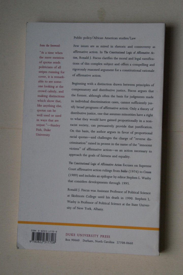 Fiscus - The Constitutional Logic Of Affirmative Action