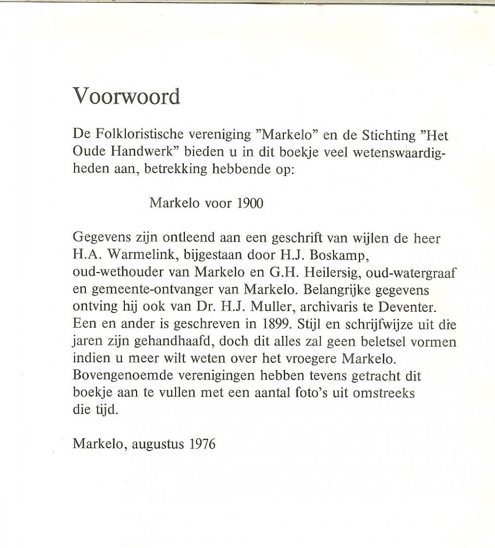 | Uitgever: | Folkloristische Vereniging 'Markelo' en 'Stichting het Oude Handwerk' Druk Tesink Zutphen uit 1976 |