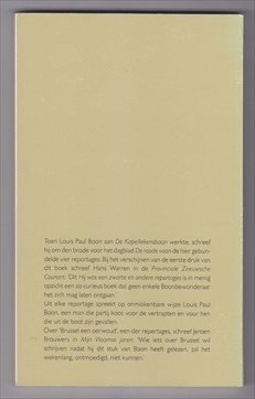 Hij was een zwarte en andere reportages Gerards & Scheurs, Maastricht. 1989. Derde druk. Paperback (gebrocheerd, garenloos). Papieren band. 107 pp. 12¼ x 20 x 1 cm. 168 gr. Reportages oorspronkelijk verschenen in het dagblad De Rode Vaan. Bezorgd door en met een nawoord van Jos Muyres. Het is nummer vier in de fragmenten-reeks. Omslagontwerp en typografie zijn van Piet Gerards. ISBN-10 90-70850-18-4. p. [5]: Holland door de vóór-ruit van de autobus heen p. [31]: Brussel een oerwoud p. [59]: Aan de kust zonder naar de zee te kijken p. [75]: Hij was een zwarte p. [93]: Nawoord p. 103: Noten p. 107: Aantekeningen Toen Louis Paul Boon aan [zijn onbetwiste meesterwerk] De Kapellekensbaan werkte, schreef om den brode voor het dagblad De roode vaan de hier gebundelde vier reportages. Bij het verschijnen van de eerste druk van dit boek schreef Hans Warren in de Provenciale Zeeuwsche Courant: Dit 'Hij is een zwarte en andere reportages is in menig opzicht een zo curieus boek dat geen enkele Boonbewonderaar het zich mag laten ontgaan.' Uit elke reportage spreekt op onmiskenbare wijze Louis Paul Boon, een man die partij koos voor de vertrapten en voor hen die uit de boot zijn gevallen. Over 'Brussel een oerwoud', een der reportages, schreef Jeroen Brouwers in Mijn Vlaamse jaren: 'Wie iets over Brussel wil schrijven nadat hij dit stuk van Boon heeft gelezen, zal het wekenlang, ontmoedigd, niet kunnen.' Net exemplaar. In prima staat. BOOKNUMBER: 1390 |