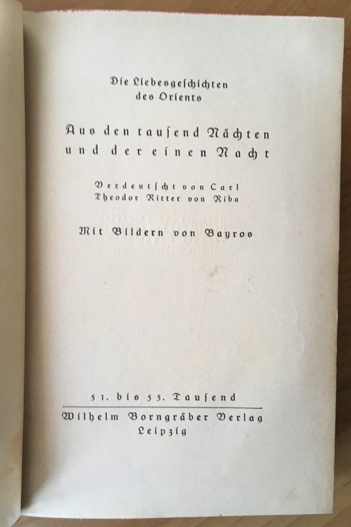 | Titel: | 1001 Nacht - Die berühmten Liebesgeschichten und Märchen des Orients. Mit Bildern von Bayros |