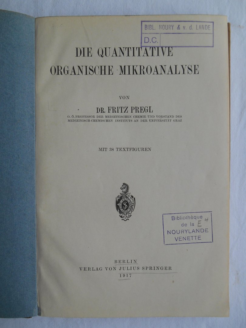 Pregl, Fritz - Die quantitative organische Mikroanalyse