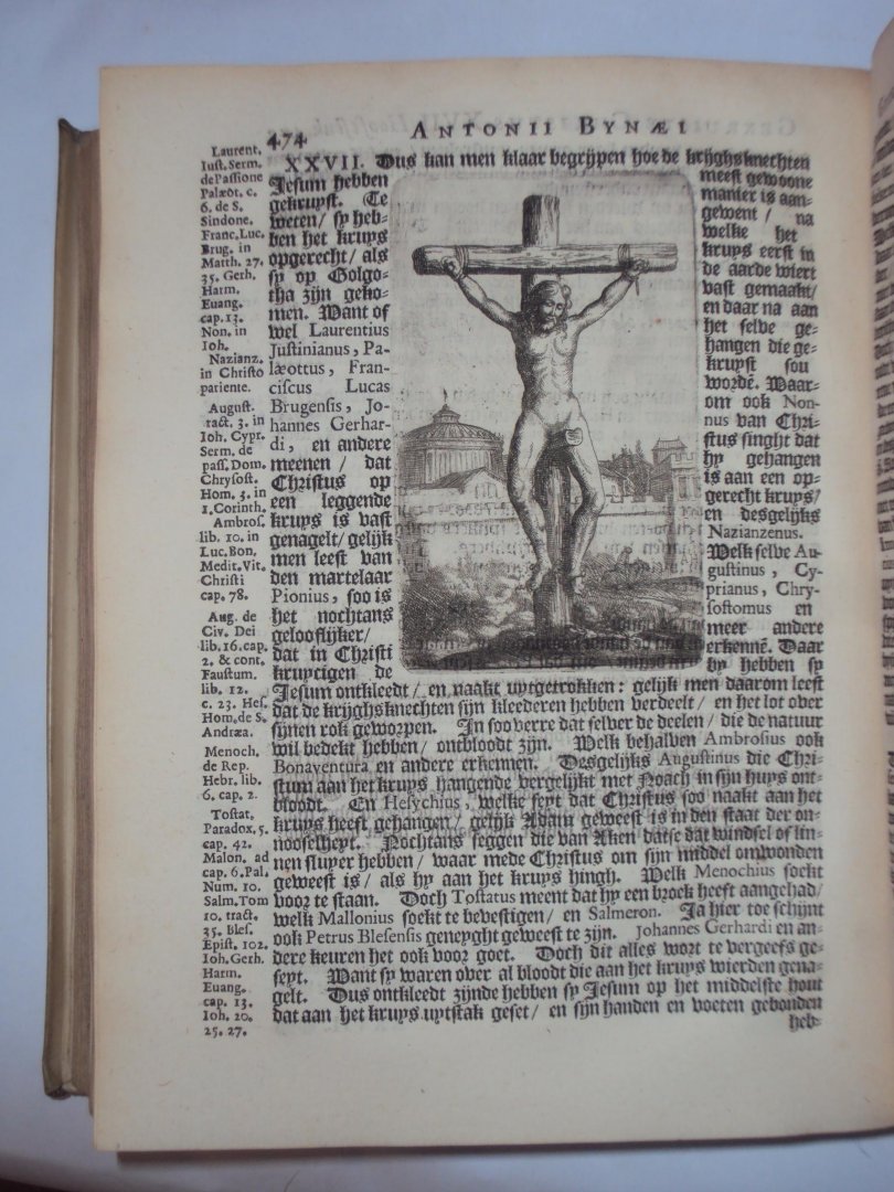 Antonius Bynaeus - Gekruiste Christus; ofte verklaringe over de geschiedenisse van het lijden, sterven, ende begraven onses heeren ende salighmakers Jesu Christi. Uyt Joodsche, Romeynsche, en andere outheden. - Dordrecht, weduwe van Jasper en Dirck Goris, 1683 - 578 pp - overslaand perkament / vellum - 21 x 16 cm