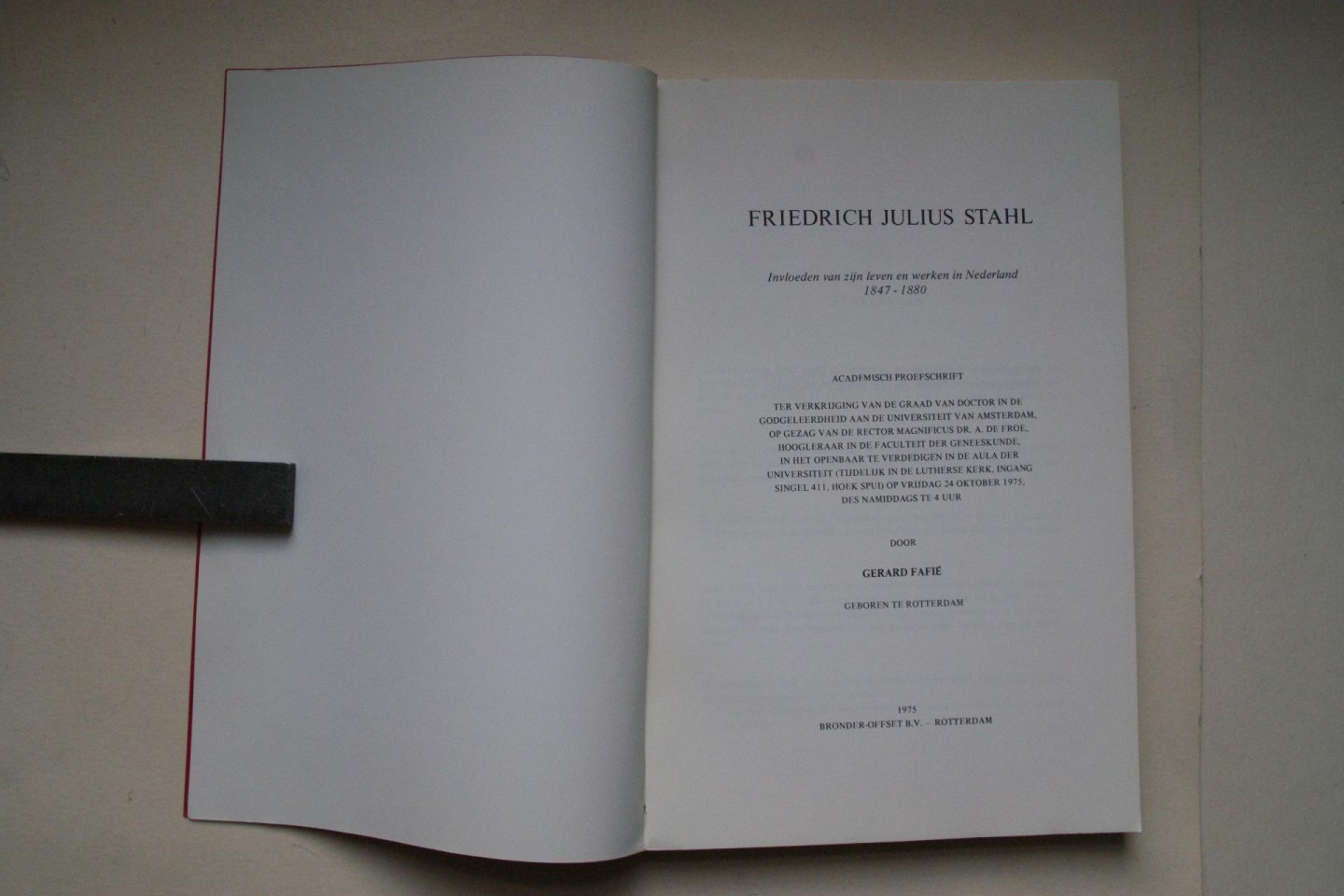 Fafie, G. - dissertatie met stellingen: Friedrich Julius Stahl