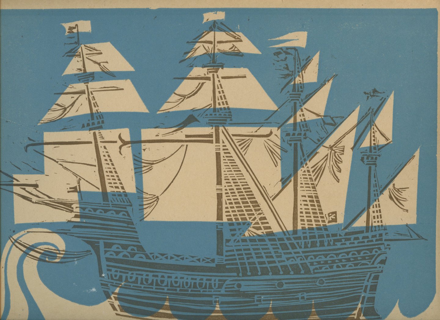 Incl. affiche (meerkleuren) 65 x 46 cm. verkleuring front en eindpagina, klein scheurtje s.o., vlekje op linnen rug. |