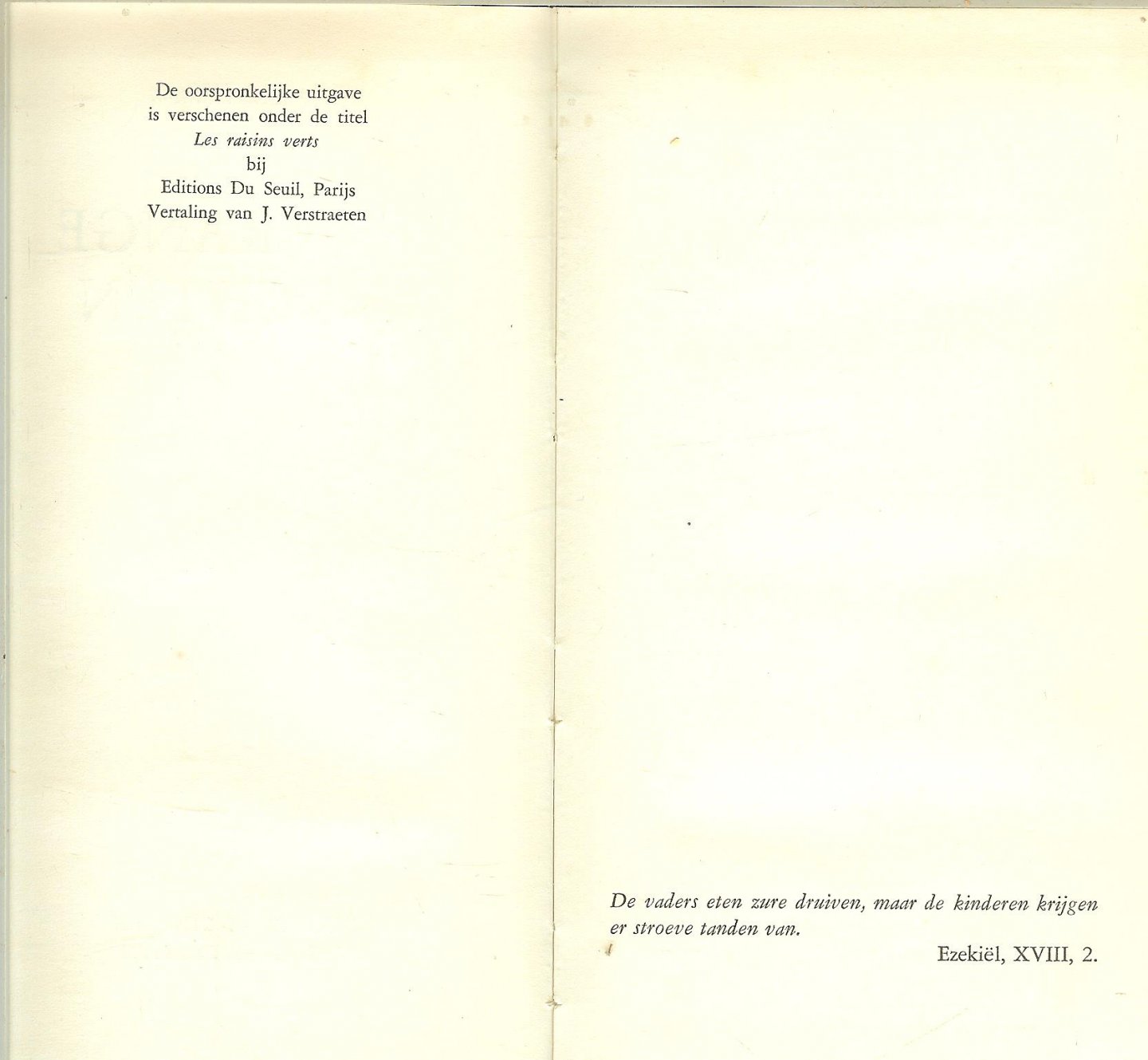 Les raisins verts Oorspronkelijke titel bij Editions Du Seuil Parijs |
