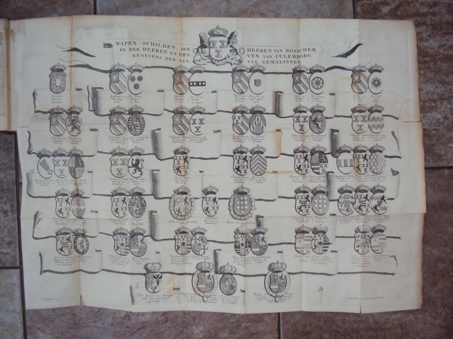 A.W.K. Voet van Oudheusden - Historische beschryvinge van Culemborg; behelzende een naemlyst der heeren van Bosichem, benevens de heeren en graeven van Culemborg, gesproten uit de aloude graeven van Teysterband; derzelver huwelyken, nakoomelingen en het merkwaerdige 't welk onder haere regeeringe is voorgevallen. Mitsgaders een beschryvinge van de stad Culemborg, derzelver regeeringwyze, gebouwen, zoo wereldlyke als geestelyke, aloude handvesten, privilegien en voorrechten enz - Utrecht, J.H. Vonk van Lynden, 1753 - 716 pp - half leer / calf band - 20,5 x 13,5 cm