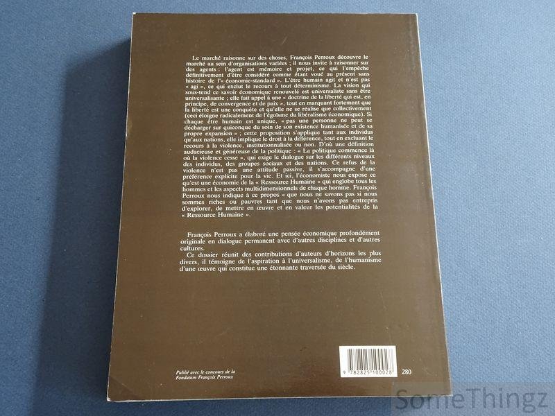 | Meer info: | Le marché raisonne sur des choses, François Perroux à raisonner sur des agents : l'agent est mémoire et projet, ce qui l'empêche définitivement d'être considéré comme étant voué au présent sans histoire de l'«économie-standard». |