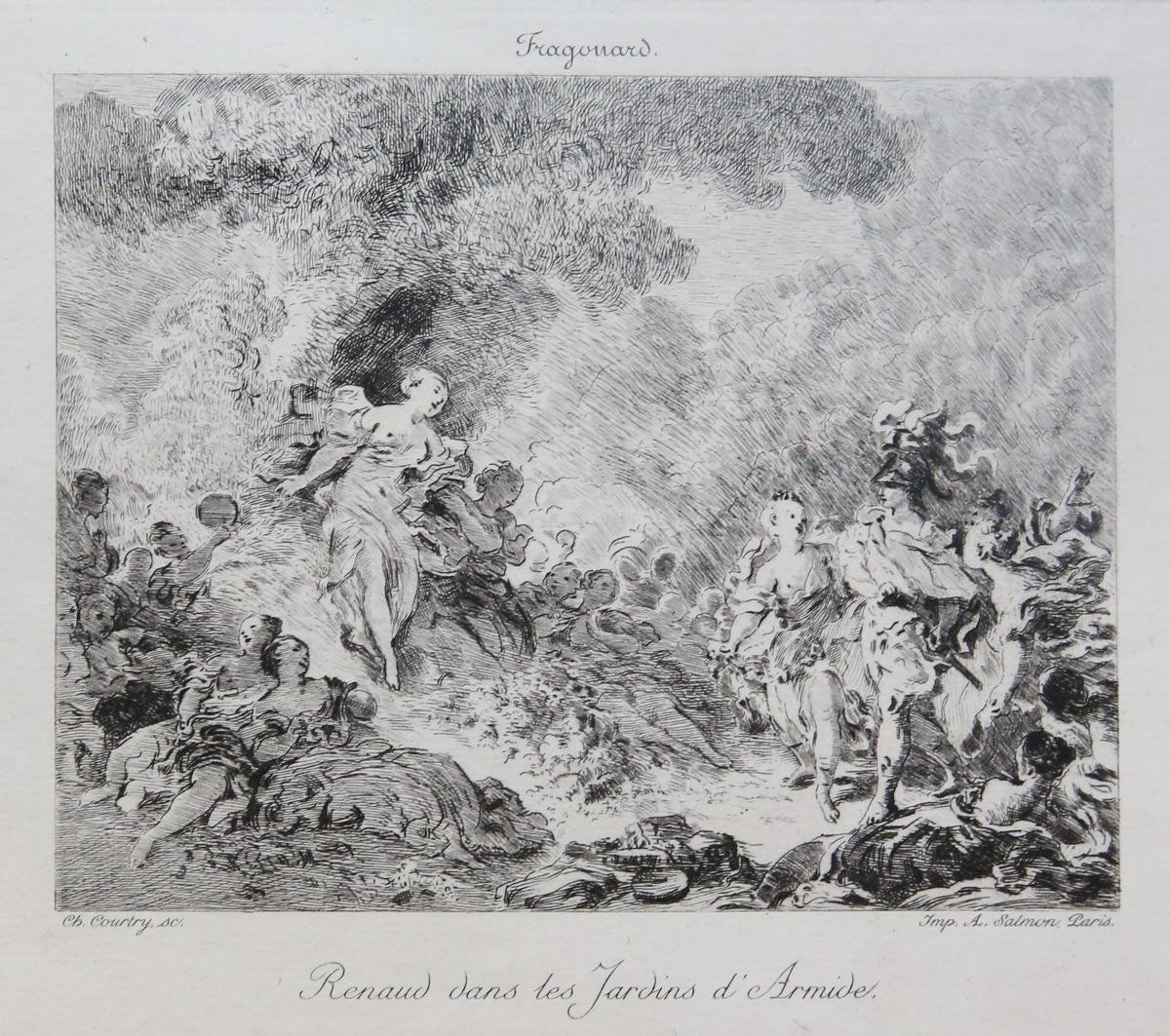 | Bijzonderheden: | Etching after the painting by Jean-Honoré Fragonard, who's name is written above the print. Below the title is written. Reference to the famous poem "Jeruzalem Verlost (La Gerusalemme liberata)" by the Italian poet Torquato Tasso, first published... |
