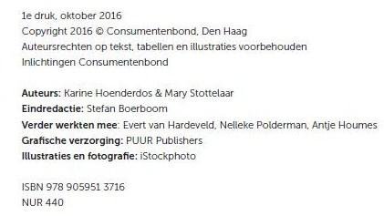 | Bijzonderheden: | E-book 1e druk, oktober 2016 176 pag. Bestandsformaat: PDF 9,33 mb Consumentenbond |