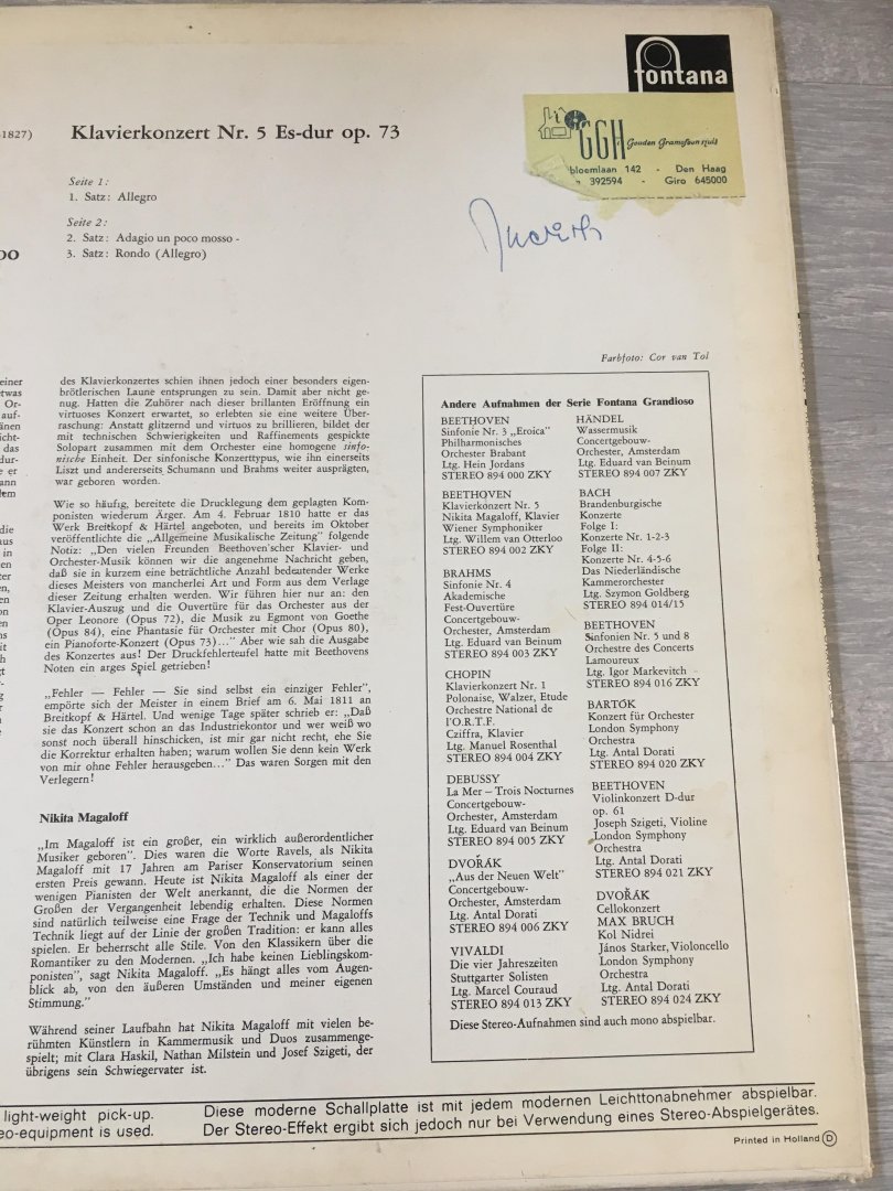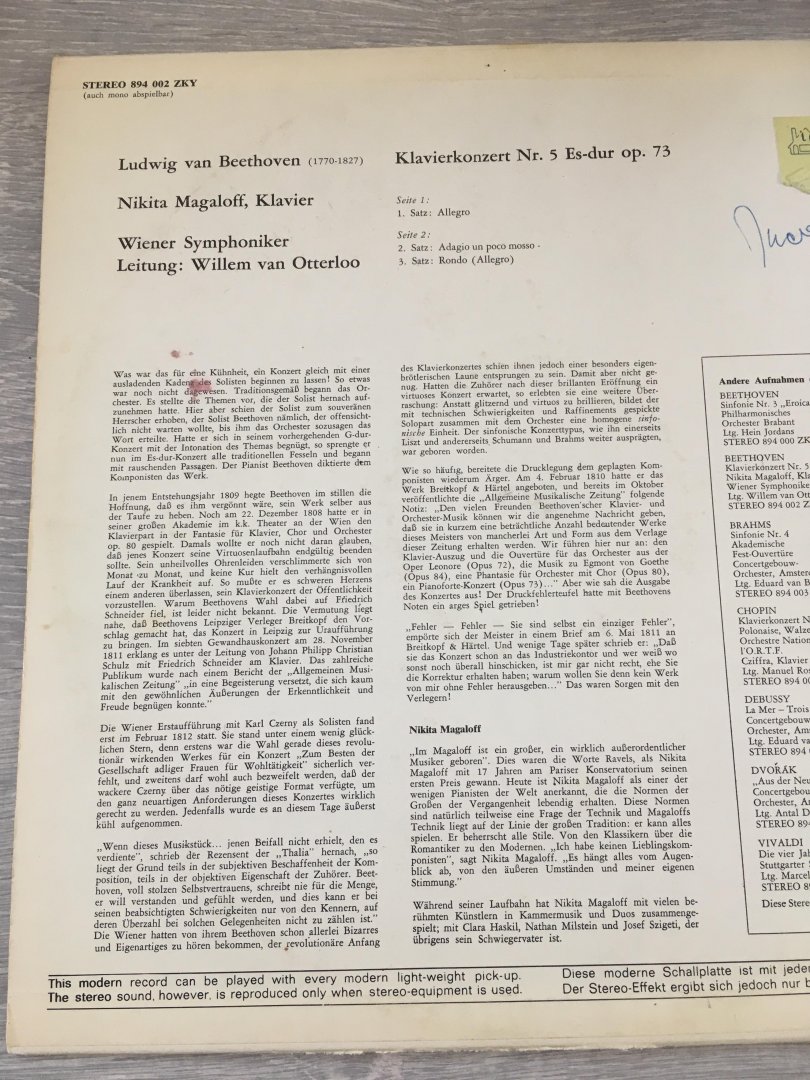 | Titel: | LP; Beethoven*, Nikita Magaloff, Wiener Symphoniker Ltg. Willem Van Otterloo – Klavierkonzert Nr. 5 |