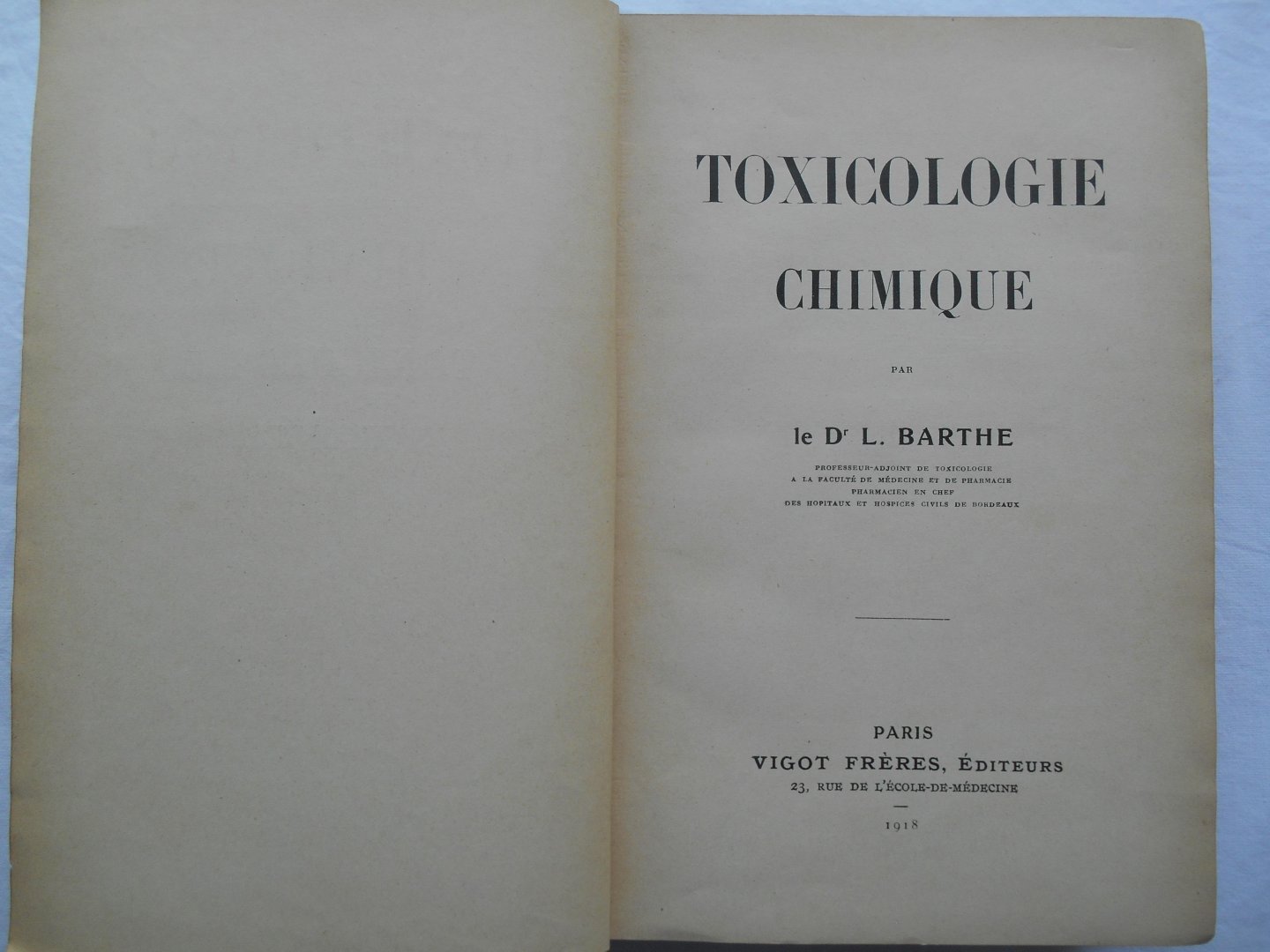 | Titel: | Toxicologie Chimique |