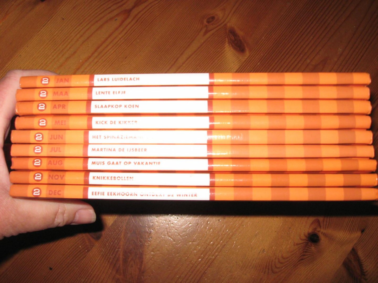 -Lars Luidelach -Lente Elfje -Slaapkop Koen -Kick de kikker -Het spinaziemannetje -Martina de ijsbeer -Muis gaat op vakantie -Knikkebollen -Eefie eekhoorn ontdekt de winter |